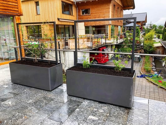Rankenhilfen aus rostigem Stahl oder aus Schweizer Kastanienholz geben den Pflanzen den nötigen Halt und helfen den Pflanzen in die Höhe zu wachsen. Nach einigen Jahren dienen diese Objekte als herrlichen, naturnahen Sichtschutz.